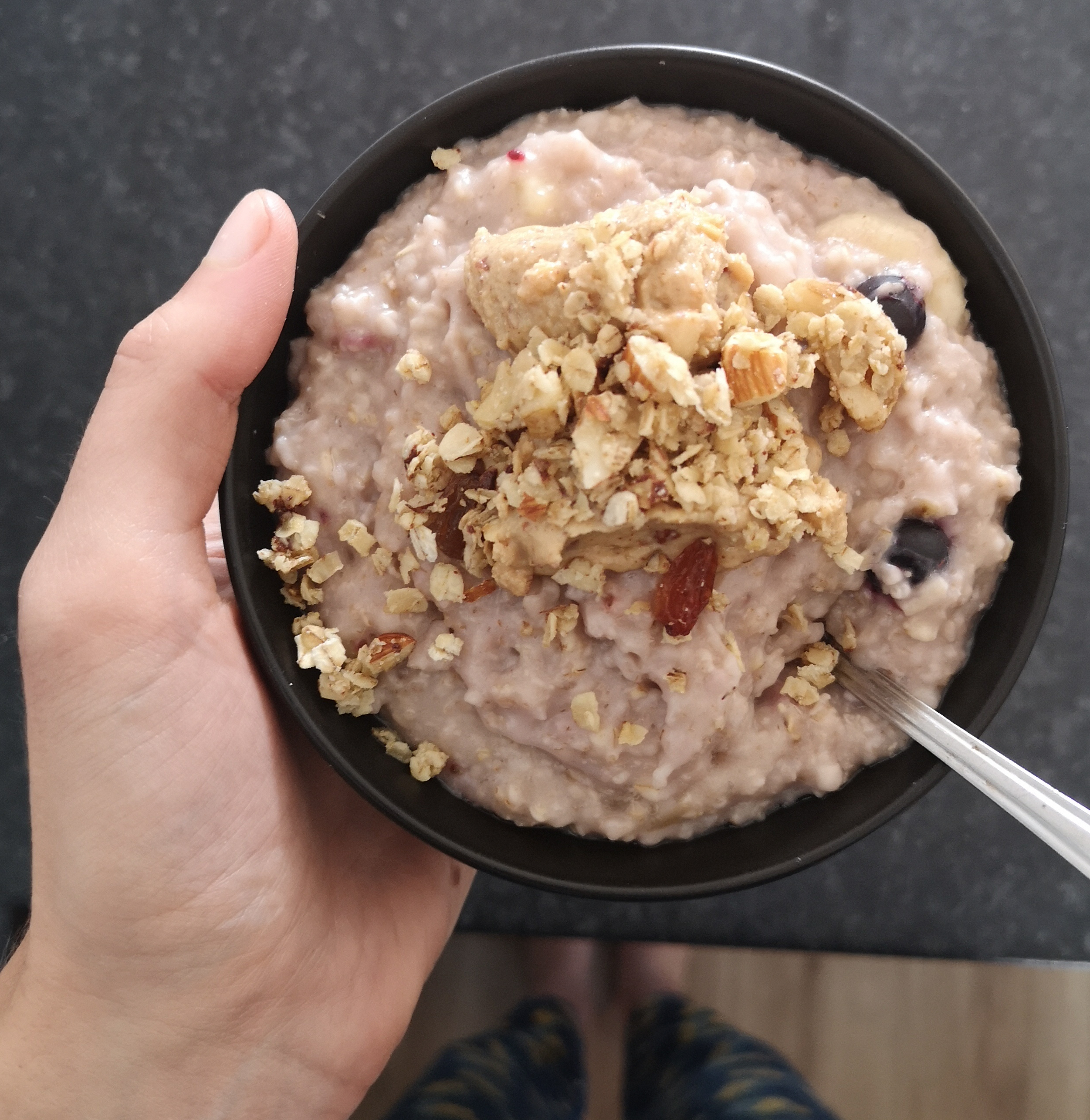 Taking life back down to basics involves coming into the present moment. Which means these worries, anxieties and stressors can’t exist. While eating breakfast, I chose to eat without any background noise. I chose to notice that I was eating. I looked at what was on my spoon. The oats, the blueberries, the banana, the almonds, the peanut butter. I remembered to be grateful that I could pick up my spoon to eat breakfast. I’m able to feed myself and digest my food. That I had access to a kitchen and the knowledge to cook something so tasty. That I could afford to buy these ingredients. For the supermarket staff who put it on the shelf. For the delivery drivers, for the factory workers, for the growers.