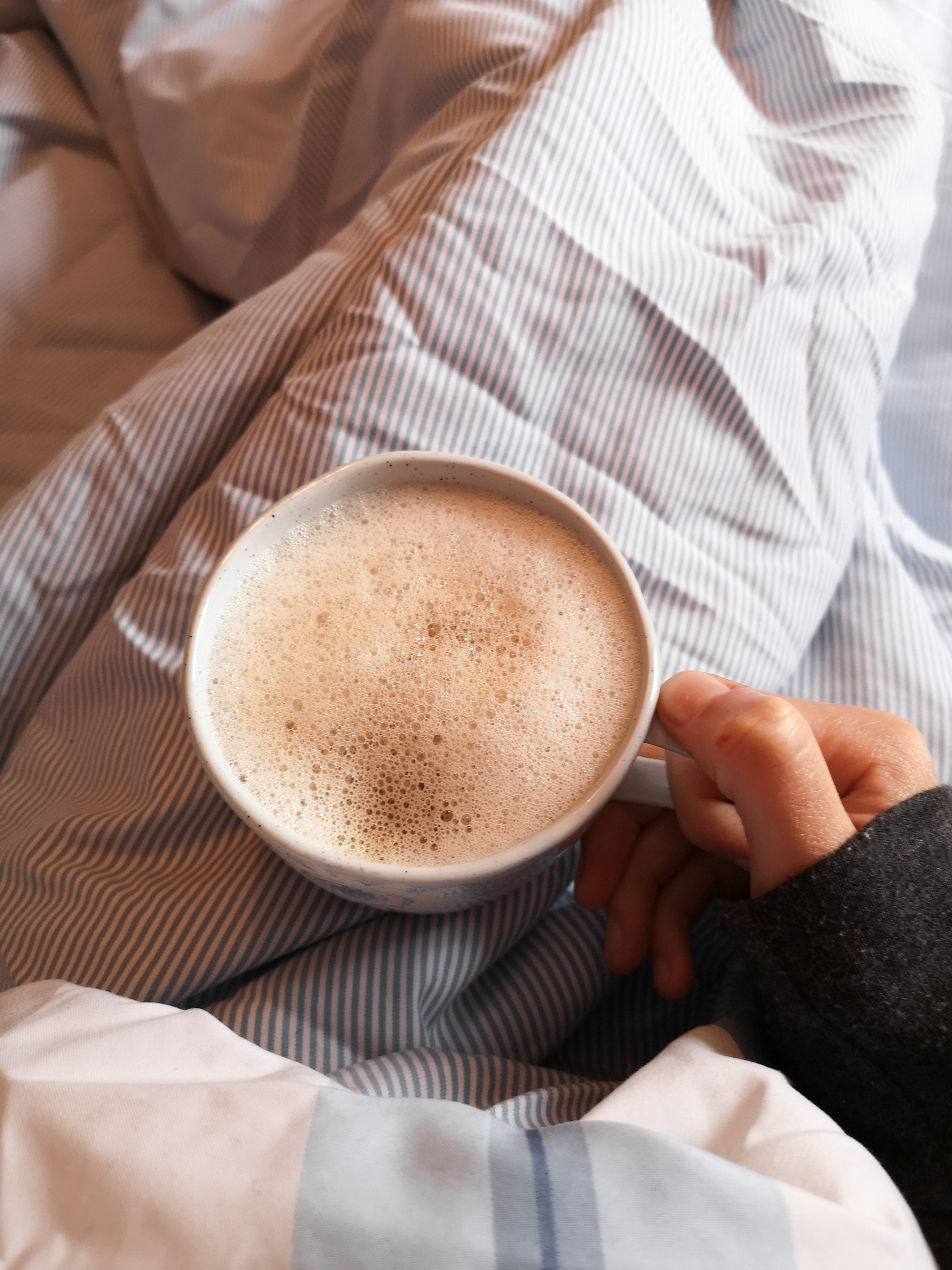 Also featuring this week: coffee in bed and take out coffee. A takeout coffee would have been something to squeeze in among many other things before. Now there’s less to do it has become a real treat. Coffee in bed is always a treat.